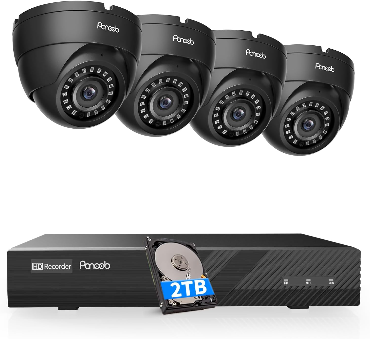 Home Camera Security System, 4X 5 Megapixel Wired IP Dome Turret Cameras with Person Detection for 24/7 Recording, Built-in Mic, Remote Access, 4K 8CH(Channel) NVR 2TB HDD, PD94CA30408-5M