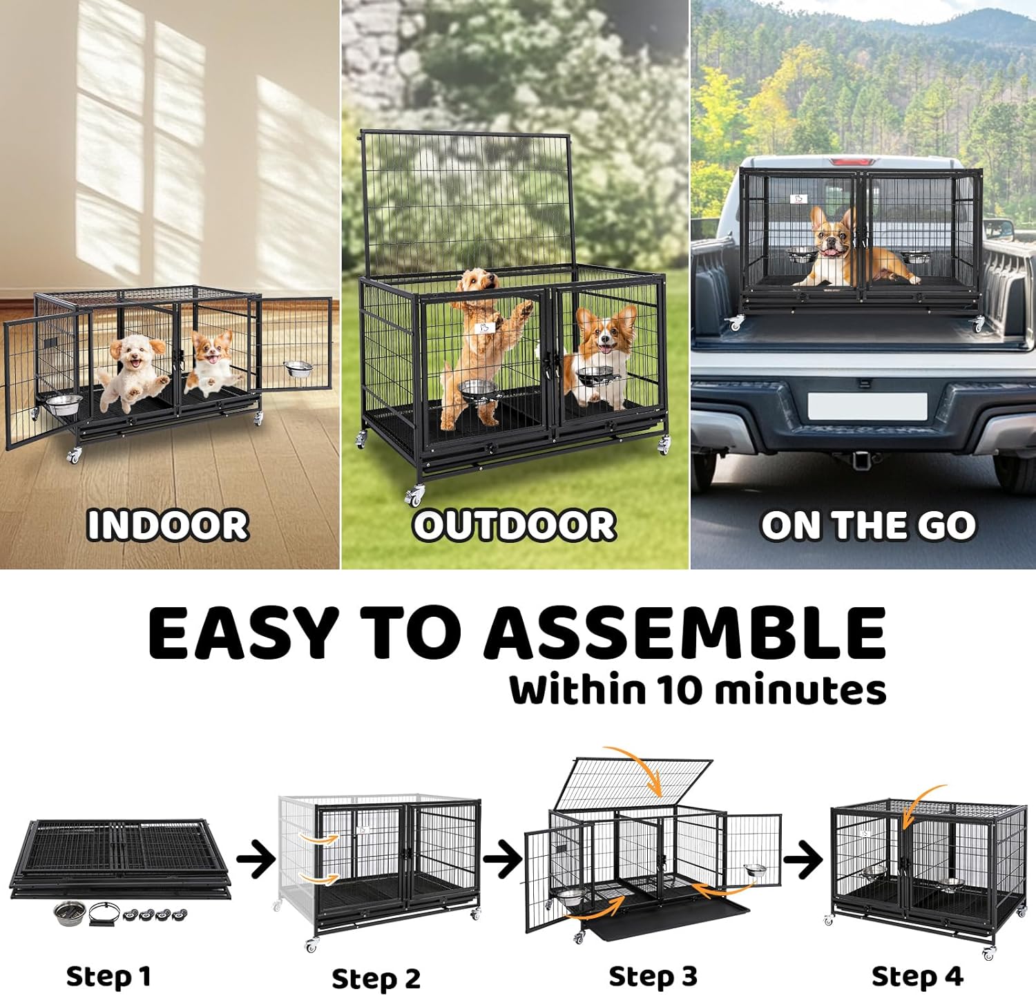 Removable divider panel allow you to adjust the cage size into two small or one big cage; Double Door Latches make it double security for your pets