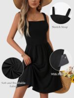 HUHOT Women’s Summer Casual Square Neck Dress with Pocket Cute Sleeveless High Waist A-line Sundress Midi Dresses