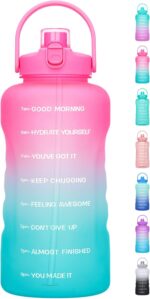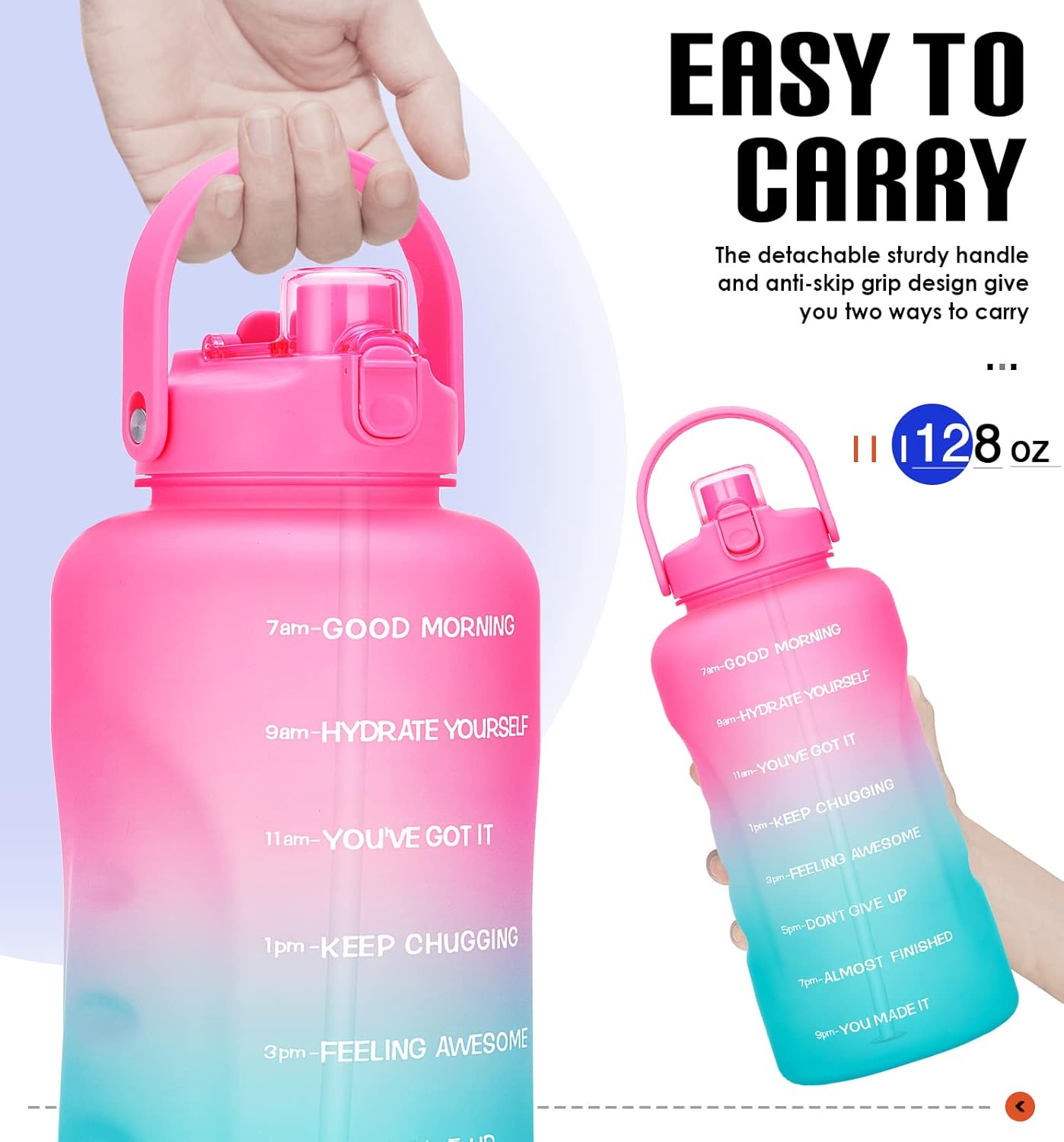 DAILY HYDRATION TRACKER: Stay hydrated, stay healthy! Our translucent gallon water bottle features time markers & motivational quotes, empowering you to monitor your daily water intake effortlessly