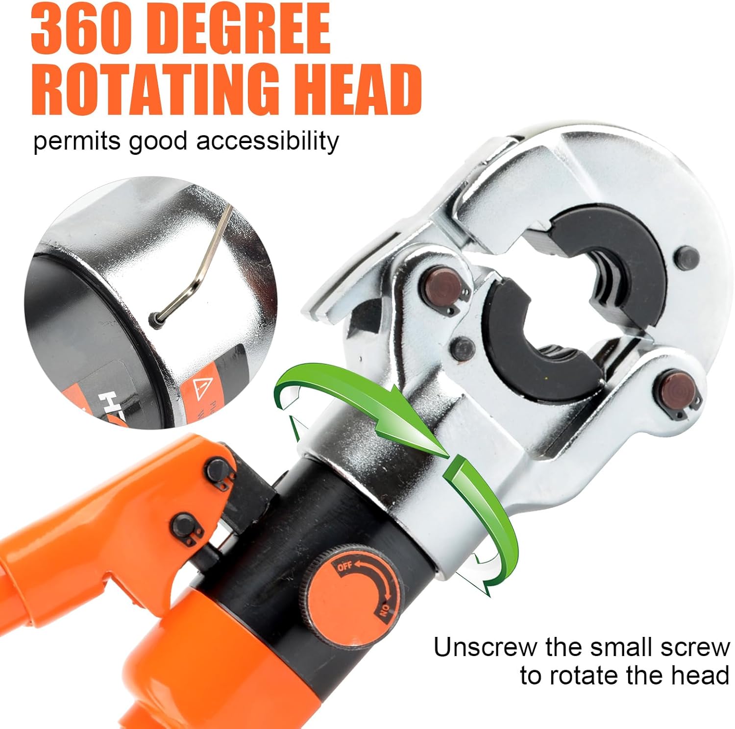 【360-Degree Rotation】: The 360-degree rotating head is capable of all crimping environments,especially the three-way valve,which greatly promotes the convenience of crimping work