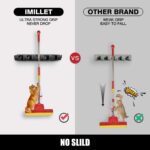 IMILLET 2 Pack Mop and Broom Holder, Wall Mounted Organizer Mop and Broom Storage Tool Rack with 5 Ball Slots and 6 Hooks (Black)