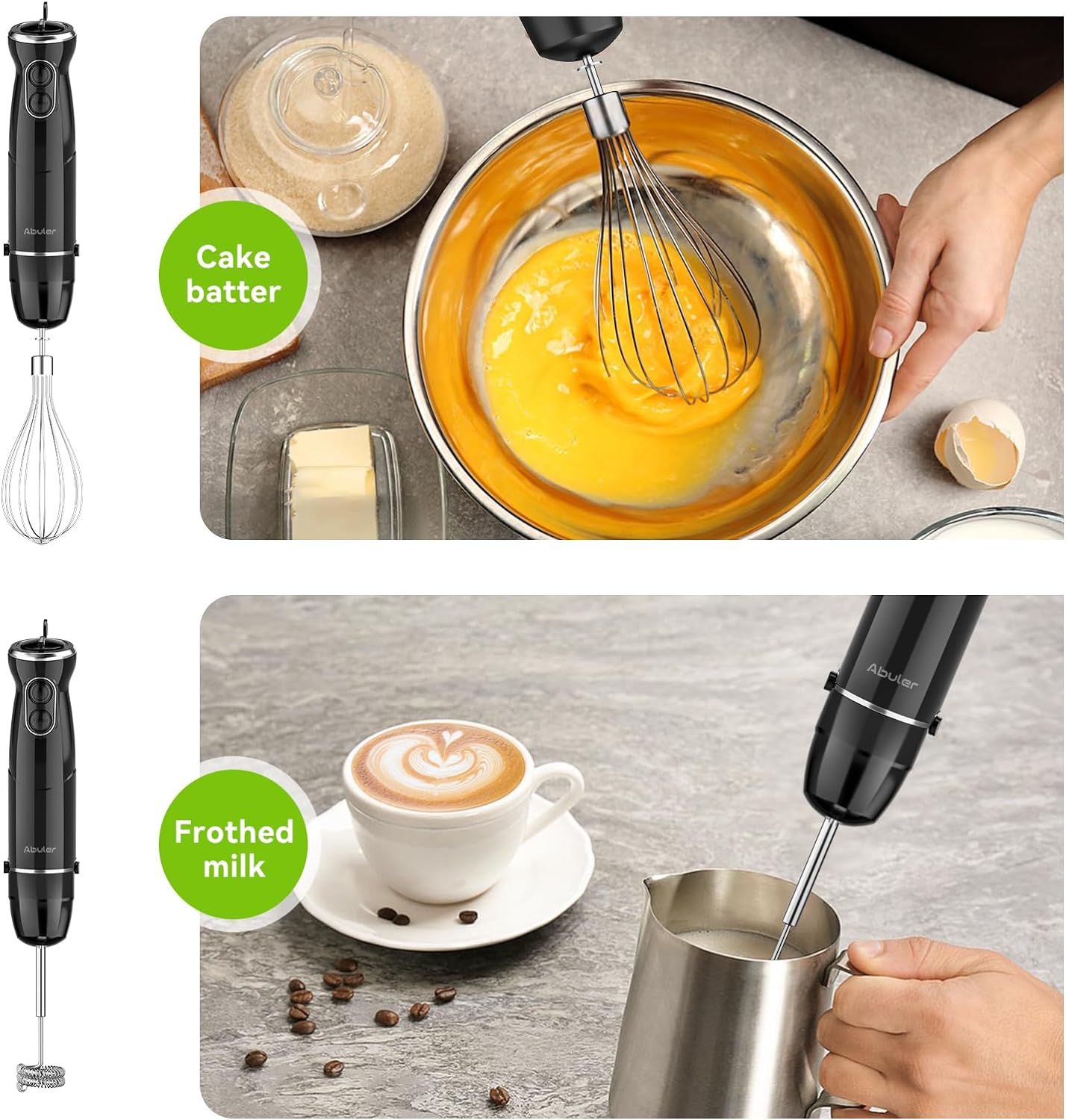 POWERFUL IMMERSION BLENDER HANDHELD: Abuler handheld blender (batidora de mano electrica) features a powerful awesome 1000-watt blending power and turbo boost mode, which would be a time saver when making soups, sauces, homemade salad dressings for meal prep or making smoothies and milkshakes with healthy natural raw ingredients.