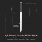 [Stable Wireless Meat Probe, Multi-functional]: Thoughtful designs bring a convenient and pleasant user experience. The minimalist-design case is not only a charging case but also a storage box for the probe, practical and convenient; the wireless temperature probe with food-grade stainless steel is rust-resistant and corrosion-resistant and will not affect the original taste of food; and the zirconia ceramic handle has high resistance to wear and heat and can withstand a high-temperature environment for a long time.(Remember to insert it deep enough and beyond the safe cooking line every time you grill)