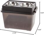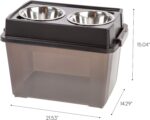 IRIS USA Elevated Dog Bowls, 15″H Raised Bowl for Large Dogs, Airtight Pet Food Storage Holds Up To 47 Lbs, 2 Removable 64 oz Stainless Steel Bowls, At Home or Camping, Smoke/Black