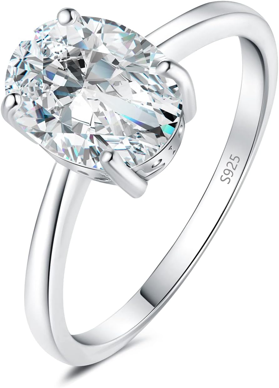 JewelryPalace Oval Shape 1ct 2ct Moissanite Solitaire Engagement Rings for Women, Classic 925 Sterling Silver Promise Ring for Her, Simulated Diamond Anniversary Wedding Ring VVS D-F