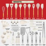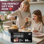Kaluns 50 PCS Silicone Kitchen Utensils Set – Mothers’s Day Gifts For Mom Wife Complete Kitchen Set 800°F Heat Resistant Non-Stick Premium Silicone Cooking Utensils W Wooden Handles Gifts For Mothers
