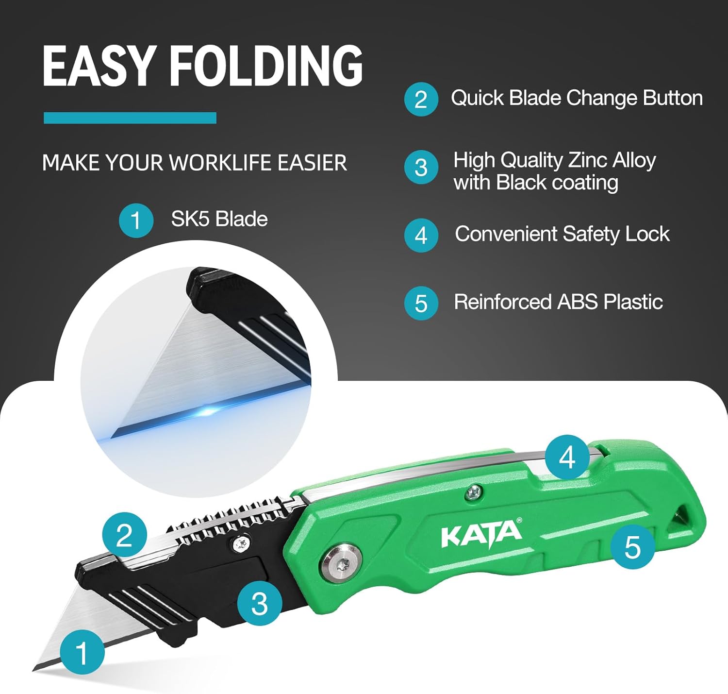 KATA Folding Box Cutter Knives: Heavy Duty Utility Knife Pocket Box Cutter with Extra 20pcs Razor Blades – 4-Pack Plastic Cardboard Opener Safey Knives – Gifts for Men Cutting Cartons, leather, Rope