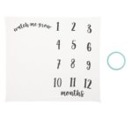 Kate & Milo’s Baby Milestone Blanket makes a wonderful photo sharing prop for creating beautiful photos of baby girl or baby boy’s milestones to send to friends and family. This newborn keepsake is the perfect new baby gift for new and expecting moms and dads! Our 100% muslin cotton newborn monthly milestone blanket has space for your baby under the words “watch me grow” and features the numbers 1 months through 12 months so you can show your baby’s age and growth in each photo. It also comes with a cut-out felt disc photo prop so you can circle the corresponding number for each photo. The color scheme is neutral with a white background and black writing. Get creative with your tiny infant’s outfits and dress up accessories you plan their monthly milestone blanket photo shoot. We’re sure the baby pictures they come up with will be memorable and adorable – and the family memories they create while putting the whole thing together will be just as great as their keepsake photos! A perfect baby registry gift to bring to your next baby shower, the baby milestone blanket is a unique and fun way to make sure that every single baby highlight gets recorded. We know mom, dad and baby will all be thanking you! Dimensions: 40” W x 36” H