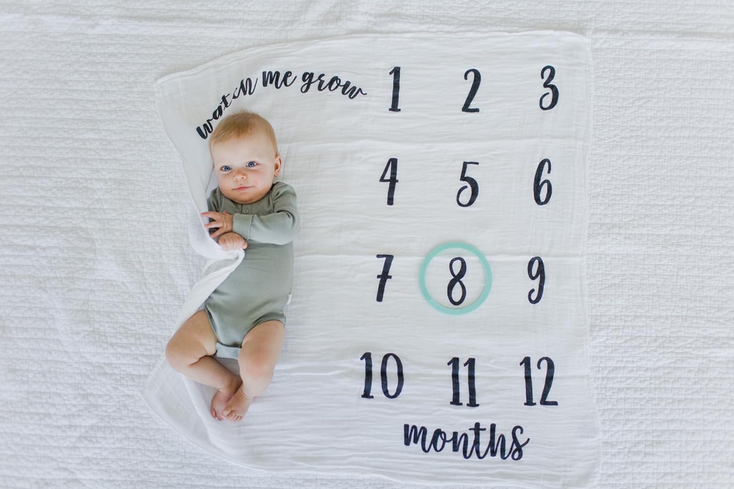 Modern Baby Milestone Blanket: This all-in-one milestone prop makes the best baby shower gift. Our timeless memory blanket makes it easy to capture your baby’s month and age to watch your baby learn and grow each month