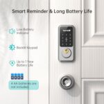 Smart Reminder: Smart Lock with Handle Set or [Next Lock App] will remind you to replace the battery(4 AA). When the smart door lock in low battery, Smart Locks keypad will flash lights and alarm, or you can check the battery level in the Next Lock APP. You could temporarily charge your keyless door lock by using Type-C back up.