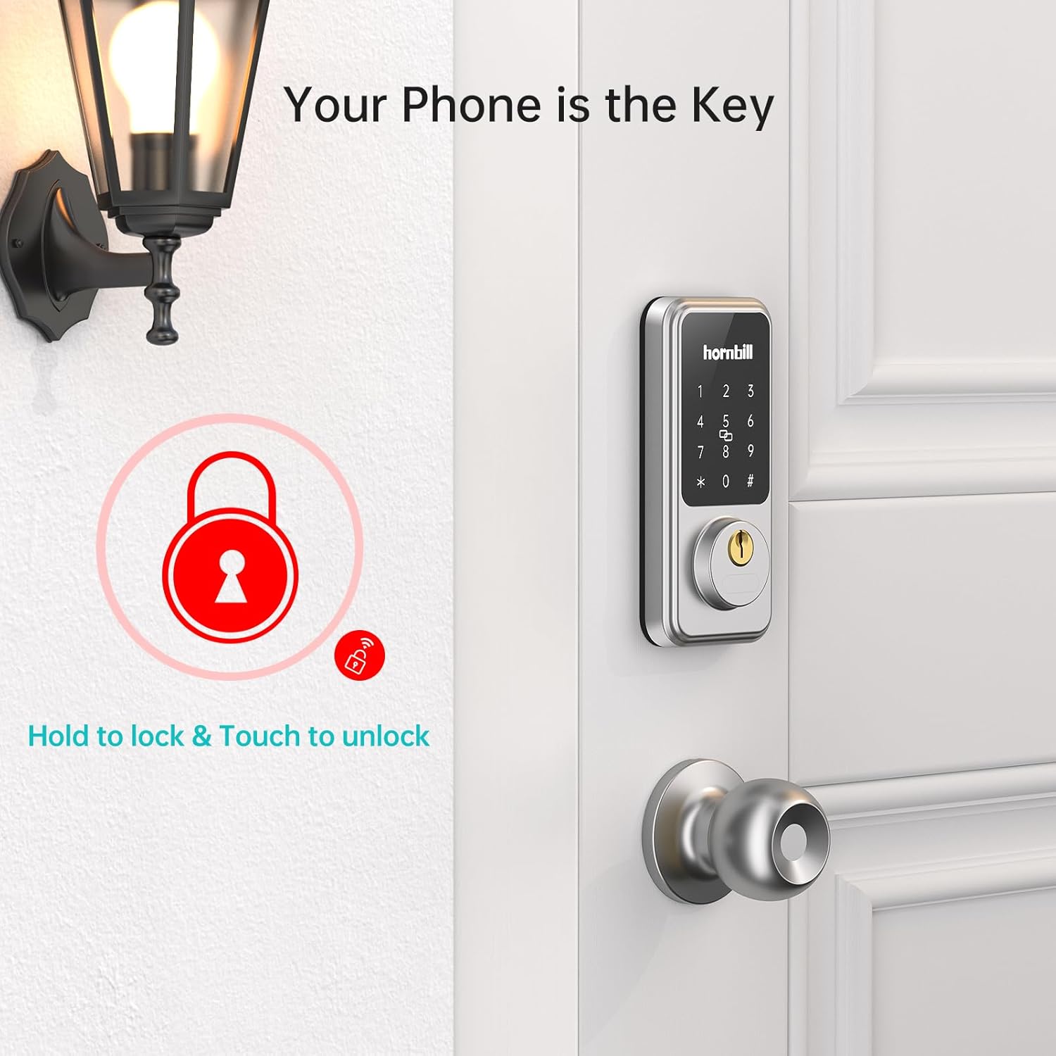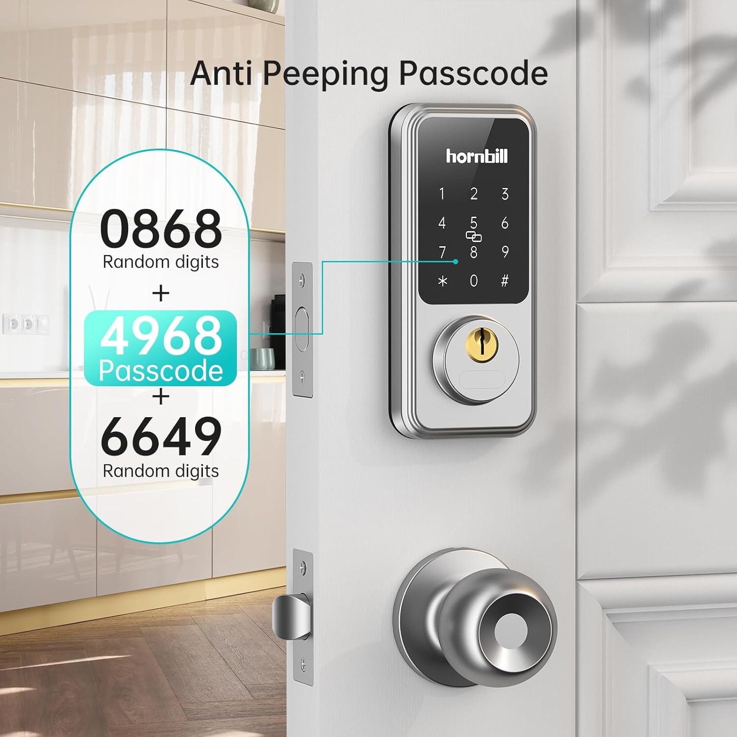 Keyless Entry Door Lock with Keypad: Gone are the days of fumbling for keys. Hornbill smart lock with handle knob set supports passcode to unlock the door. Store up to 300 passcodes in the [Next Lock App] for frequent guests or additional finger options for yourself. Never worry about lost, stolen, or copied keys again.