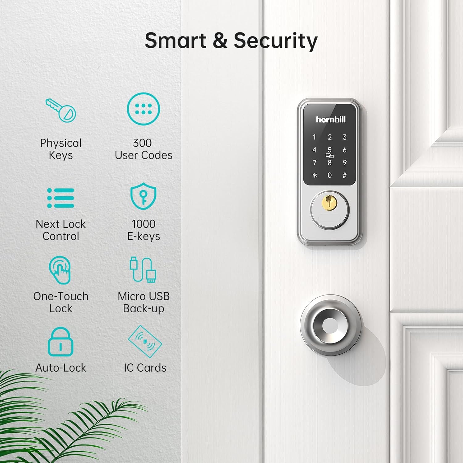 Smart Deadbolt Keypad Door Lock to Meet Your Needs: Perfect for Apartments/Airbnb/Offices/Home, Hornbill Smart Door Lock knobs are the perfect balance of safety and convenience. More than 1000 IC cards can be added(2 IC cards are provided in the package). The e-key cloud management tool is very suitable for property management.