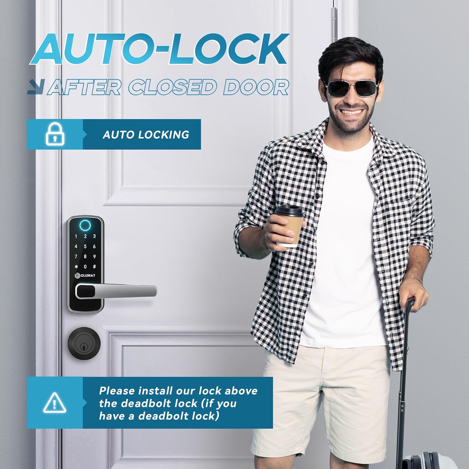 Easy Installation without Extra Drilling: Easy to install Olumat smart door lock in minutes with just a screwdriver, Reversible handles are suitable for both left handed and right handed doors.