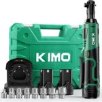 KIMO Cordless Electric Ratchet Wrench Set, 40 Ft-lbs, 400 RPM, 12V Cordless Ratchet Wrench 3/8″ w/ 60-Min Charger, 7 Sockets, 1/4″ adapter, 2-Pack 2000mAh Lithium-Ion Batteries, Variable Speed Trigger