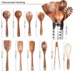 Kitchen Utenails Set with Holder,Kitchen Wooden Utensils for Cooking, Wood Utensil Natural Teak Wood Spoons for Cooking,Wooden Kitchen Utensil Set With Spatula and Ladle (11)
