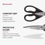 KitchenAid All Purpose Kitchen Shears with Protective Sheath Durable Stainless Steel Scissors, Dishwasher Safe, Soft Grip Comfort Handle, 8.72 Inch, Black
