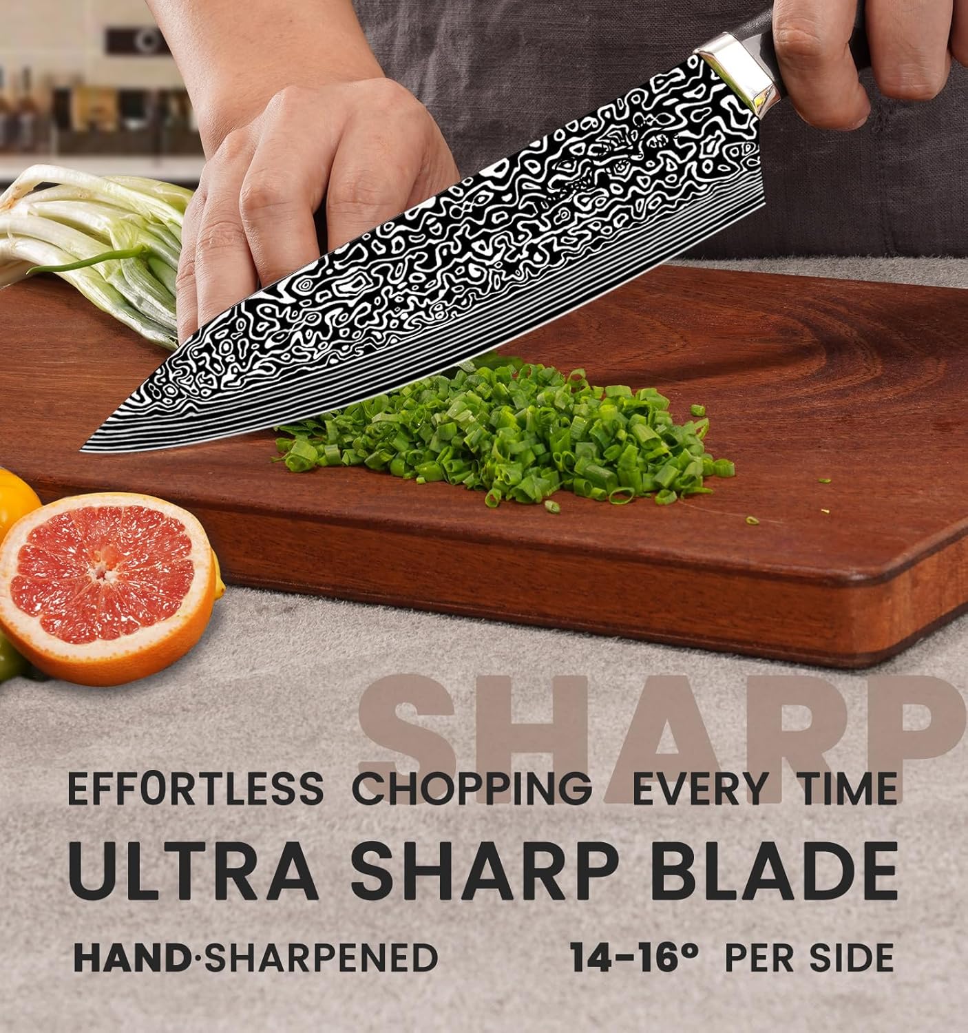 【Comfortable and safe handle】 Ergonomic knife handle that perfectly fits any hand shape, designed by the most professional designers. Whether you use it left-handed or right-handed, whether your hand is big or small, holding this knife, you can feel the smoothness and comfort that you have never felt before! Show off your cutting skills, it will be your best partner!