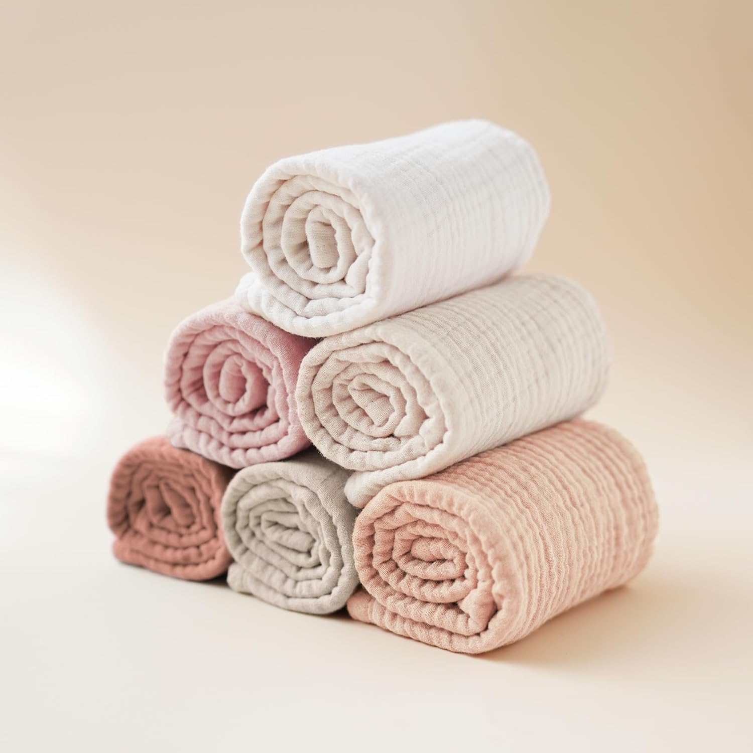 Ideal for Any Occasion: Each set is carefully crafted and neatly packaged. This 6-pack of baby muslin burp cloths makes a practical and thoughtful choice for baby showers, baby registries, Christmas, housewarmings, or any special occasion
