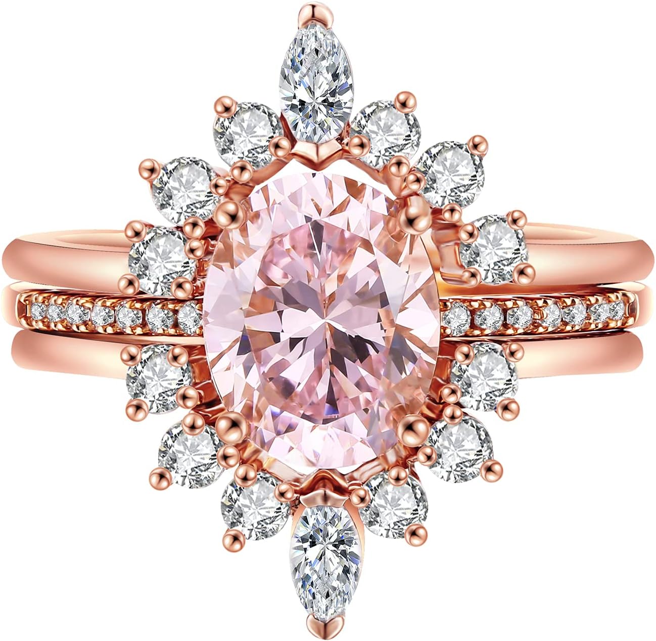 LAZLUVU Oval White Opal Stackable Rings 3A Cubic Zirconia Pink Engagement Rings for Women Rose Gold Wedding Rings Set Womens Jewelry