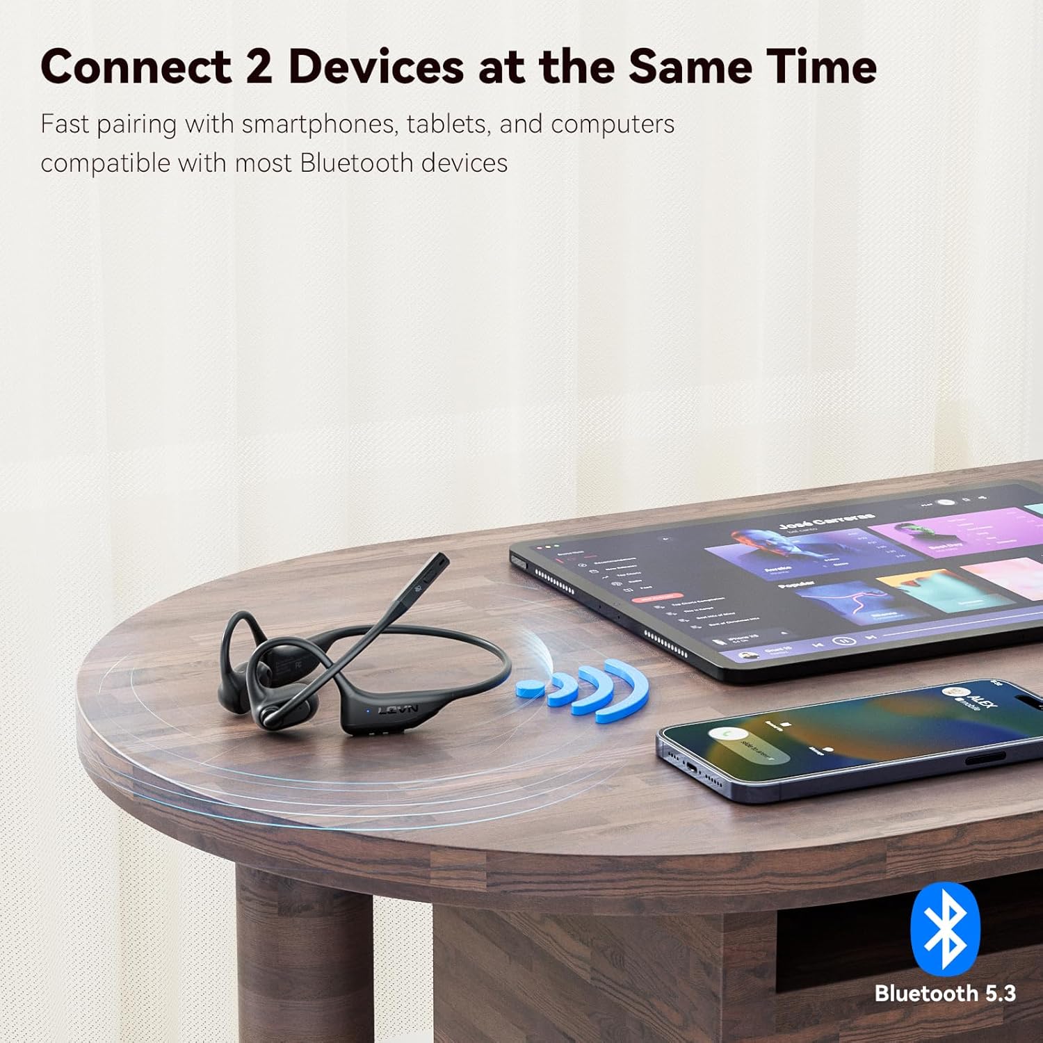 LEVN Open Ear Headphones with Mic, Bluetooth Headset with Microphone, AI Noise Cancelling Multipoint Connect Bluetooth 5.3 Headset, Sweatproof Wireless Headset for Work, Driving, Running, Workouts