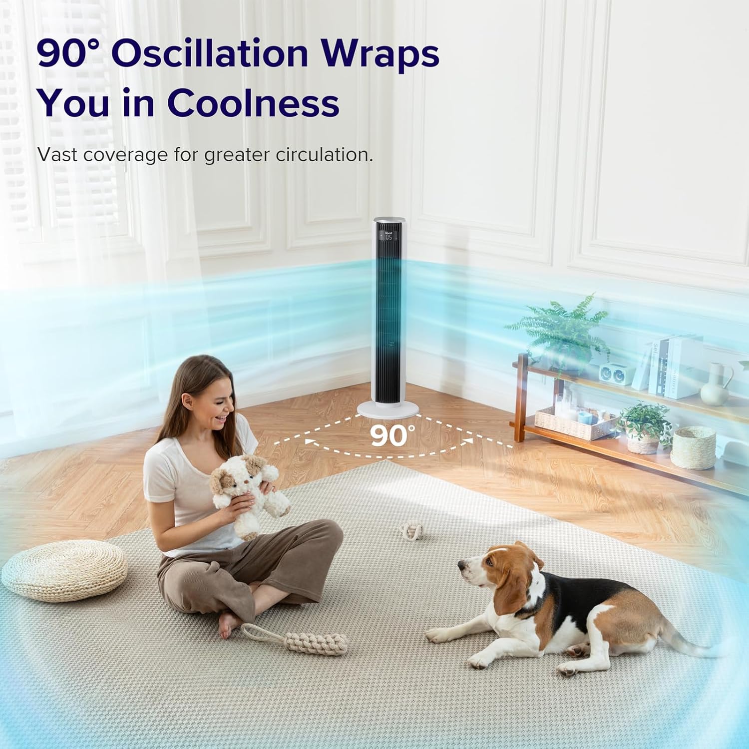 𝙀𝙛𝙛𝙞𝙘𝙞𝙚𝙣𝙩 𝘾𝙤𝙤𝙡𝙞𝙣𝙜 𝙬𝙞𝙩𝙝 𝙒𝙞𝙙𝙚 𝘼𝙞𝙧𝙛𝙡𝙤𝙬: Achieve curtain-like coverage with 25ft/s wind speed, 1062 CFM airflow, and 90° oscillation. Ideal for large spaces