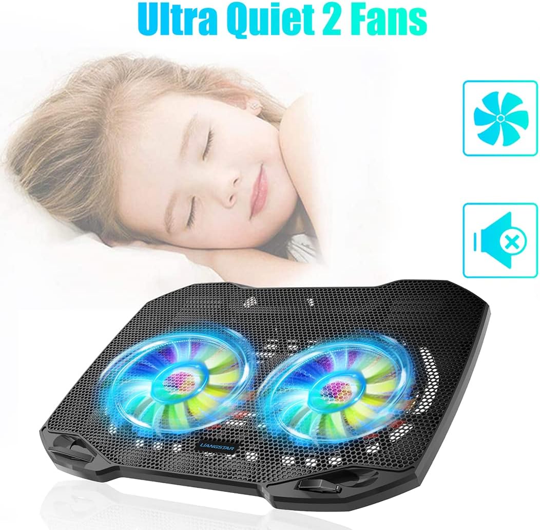 LIANGSTAR Laptop Cooling Pad, Gaming Laptop Cooler with 2 Quiet Big Fans, RGB 7 Color Light Change, Portable USB Laptop Stand 11 to 15.6 Inch, Slim and Easy Carry Working Study Outdoor Travel