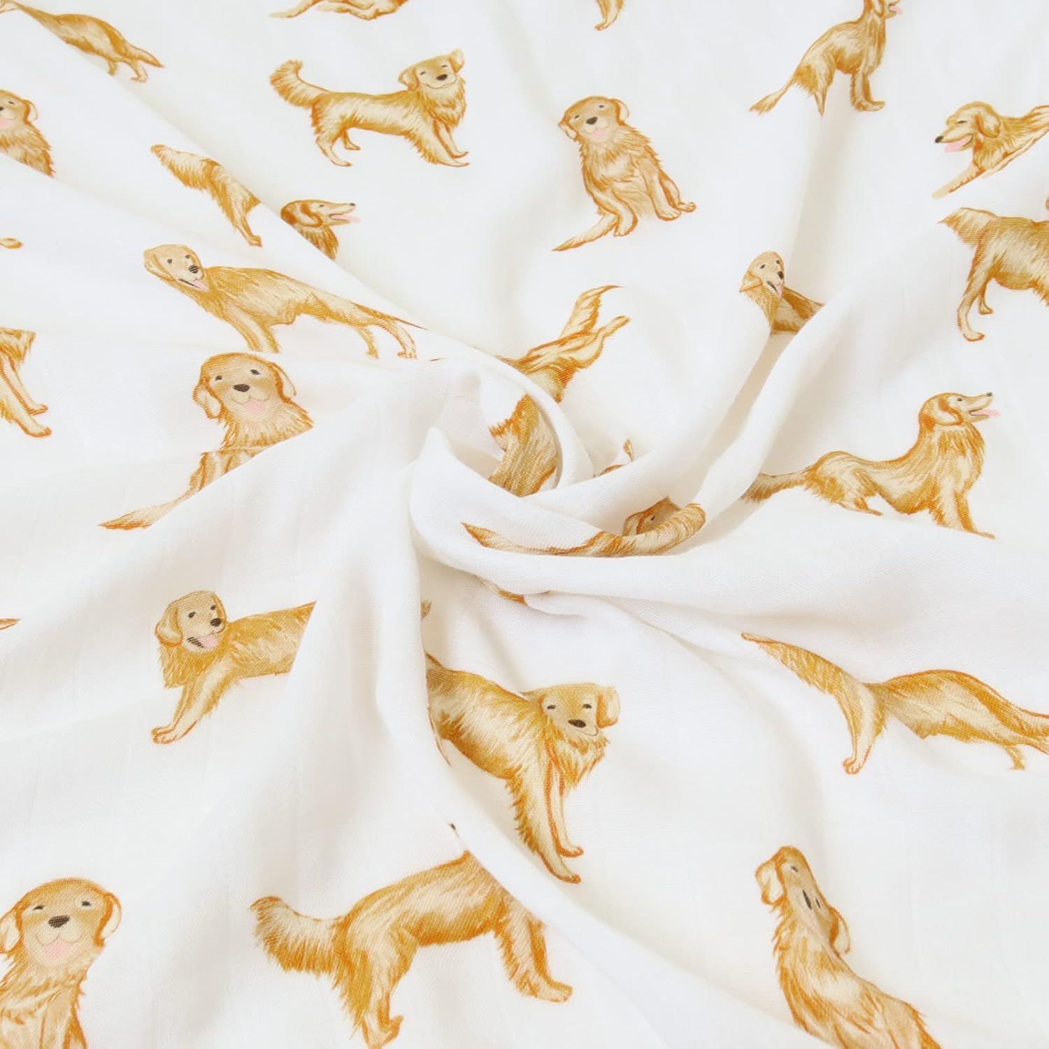 LifeTree Muslin Swaddle Blankets, 70% Viscose from Bamboo and 30% Cotton Baby Swaddle Blankets Unisex Swaddling Blanket for Newborn, Soft Large 47″ x 47″, Golden Retriever Baby Blanket