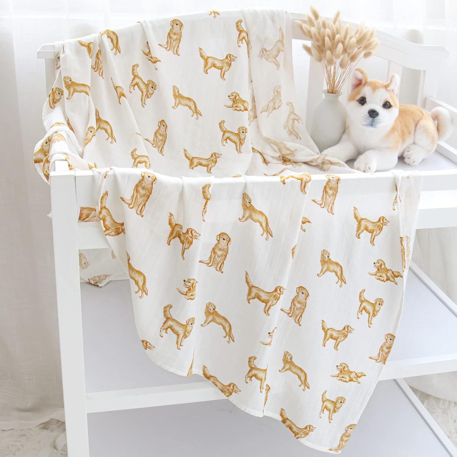 Multi- Use – Our muslin swaddle blankets for boys and girls can also be used as receiving blanket, nursing cover, stroller covers, burp cloth, car seat cover, changing pad cover, mini crib sheet and so on. Perfect for golden retriever baby gifts and golden retriever baby items.