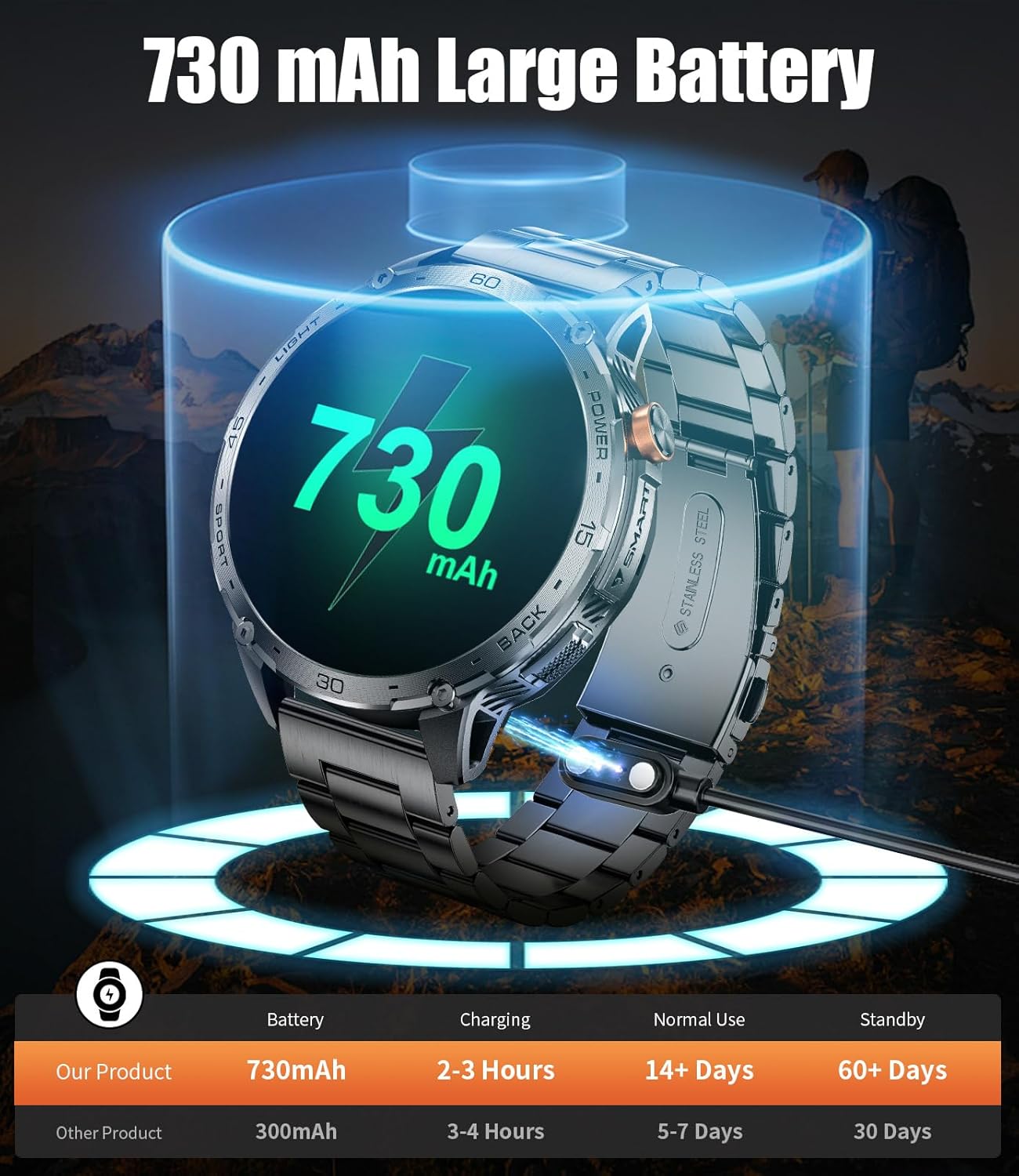 【BIG BATTERY 730 mAh & IP68 WATERPROOF】: Battery standby time is up to 35 days, working time is 7-12 days, easy to handle long-distance travel or daily use, eliminating charging troubles. Meanwhile, the IP68 waterproof makes you fearless of the challenges brought by swimming (please do not immerse in seawater or hot water).
