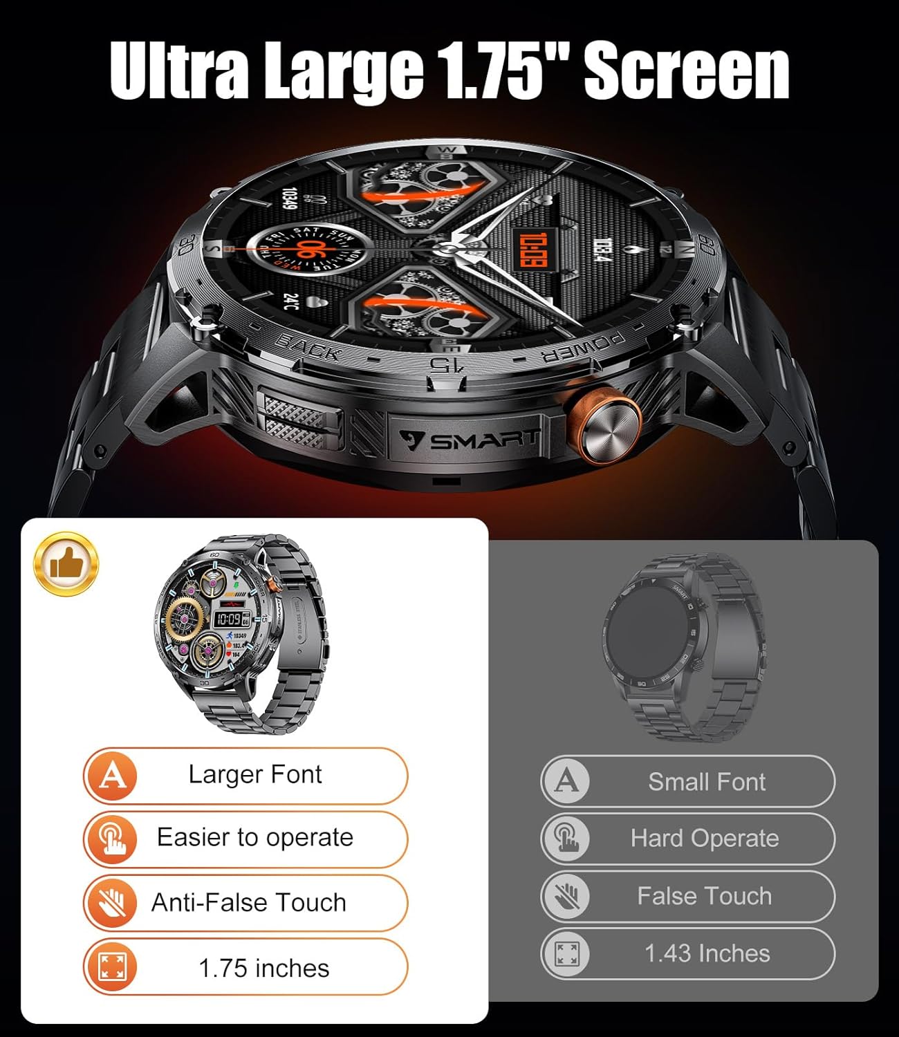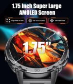 【1.75″ AMOLED ULTRA LARGE SCREEN】: This smart watch is equipped with a 1.75-inch AMOLED display with a resolution of 466*466, providing a larger, clearer and easier-to-operate visual experience. The mirror is made of new-generation tempered glass, polished through ten processes, with beautiful surface transition, scratch-resistant and abrasion-resistant, sturdy and durable, bringing users a unique visual enjoyment.