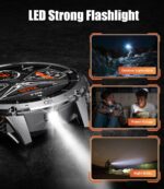 【BUILT-IN LED LIGHT】: The round smartwatch is equipped with a practical LED light that supports constant and flashing modes, providing good illumination whether you’re walking at night, camping, or in a power outage emergency. Simple operation allows you to walk confidently in any environment.
