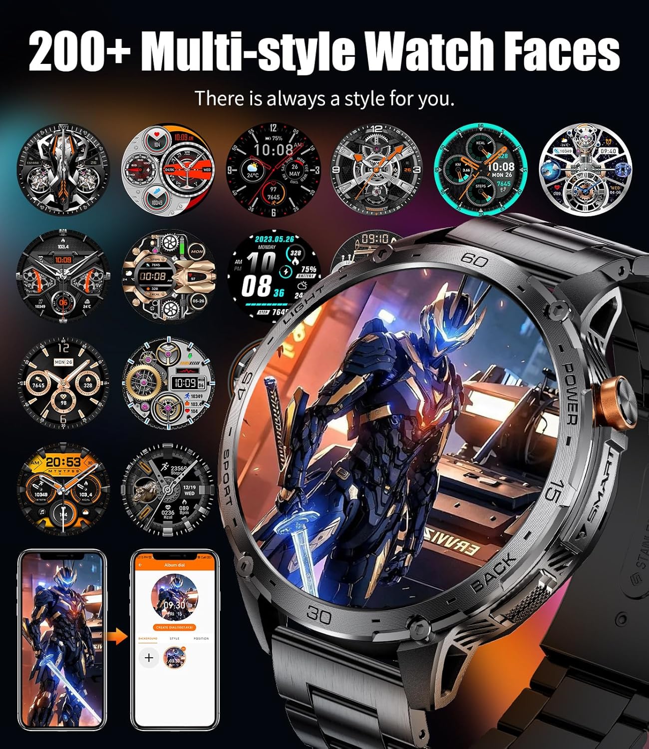 【200+ WATCH FACES】: The health watch is built-in with a variety of personalized dials, tech style, minimalist style, sport style and so on, and you can even customize the dials to turn all your favorite pictures into dials, so that you can see the wonderful moments of your life when you lift your hand.