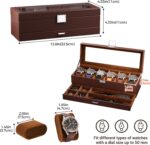 Lolalet Watch Case for Men, 6 Slot Watch Display Case with Clear Glass Lid, 2-Layer Mens Watch Box Watch Holder, 6 Watch Box Organizer, Watch Storage Case With Drawer -Espresso