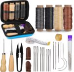 MORFEN Leather Sewing Kit, Leather Stitching Kit with Sewing Awl, Needles, Waxed Thread, Upholstery Repair Kit, Heavy Duty Sewing Tools for Hand Stitching Car Seats, Sofa, Carpets, Shoes, DIY Craft