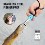 ✅ Trigger Pull Fish Gripper – Overall Length: 7-1/2 inch; Weight: 2.96 oz. The stainless steel tube and components won’t break down in saltwater and will survive years of hard use. The rubberized grip gives you a firm grasp, ergonomic handle prevents slipping during use, safety guard protects your fingers. The adjustable wrist strap at the bottom is up to 12 inches long which is great for protecting the fish gripper from being lost.