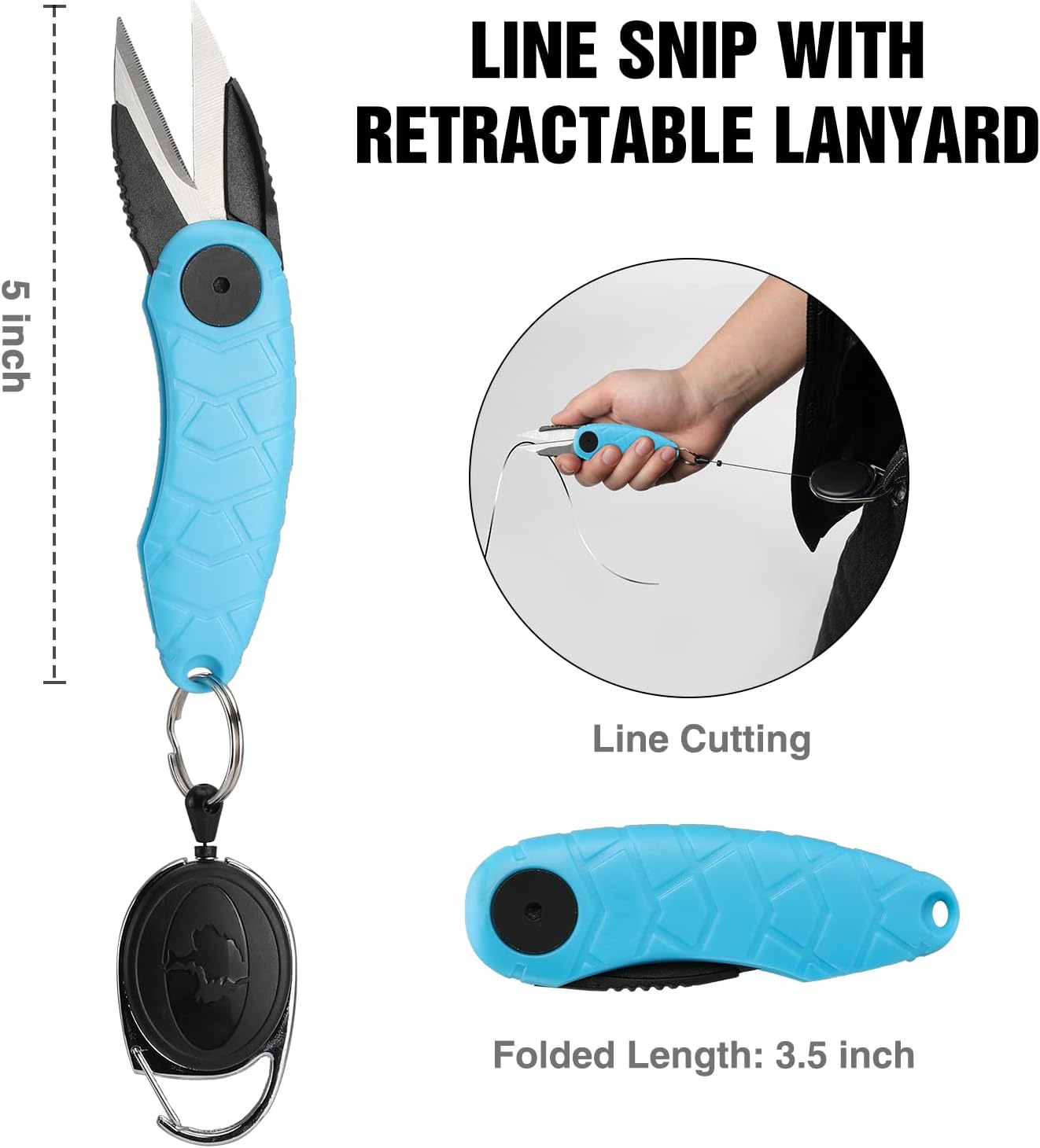✅ Folding Line Snip & Fly Fishing Retractor – Folding scissor features plastic modules that protect your fingers from being hurt, increase non-slip friction and contact area, suitable for cutting fabric and single strands of fishing line, thread. Overall Length: 5 inch; Folded Length: 3-1/2 inch, mini size for pocket storage. The fly fishing retractor can be used as key chain, retractable nylon cord can be 360°rotated, extends up to 33 inch.