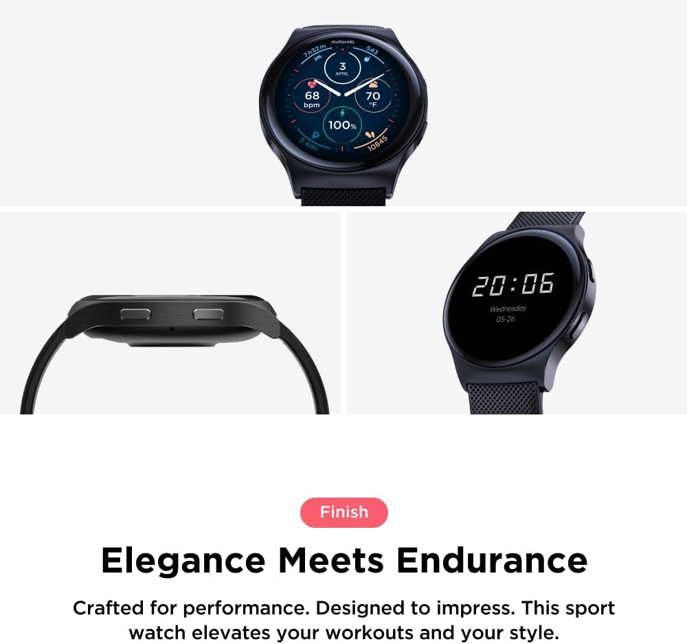 Compatibility – Designed for versatility, the moto watch 120 is compatible with both iPhone and Android phones, ensuring seamless integration with your favorite devices.