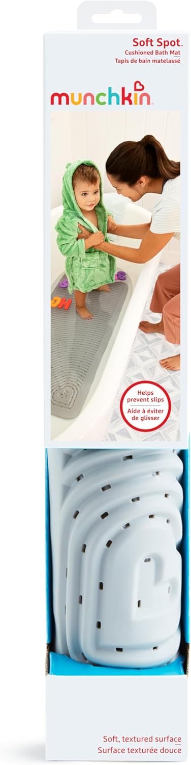Munchkin Soft Spot Baby Bath Mat for Tub, Cushioned Bathtub Mat for Toddlers and Kids, 36″x17″, Grey