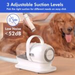 🐕【Low Noise Design】: 3 Adjustable Suction Levels to choose. Pet clippers for dogs with low noise design to help the pet feel at ease and no longer afraid of haircut. We suggest grooming your pet with our brush before trimming pet hair, treating your pet with little snacks to avoid making your pet nervous because of vacuuming noise, which conclusively makes the grooming experience even more enjoyable.