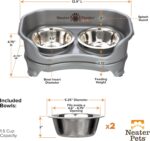 Neater Feeder Express Mess Proof Dog Bowls Elevated for Small Breeds under 18 Lb, Made in USA, No Spill Raised Dog Food Bowl Stand, Stainless Steel Food and Water Bowl Set, Feeding Station, Grey
