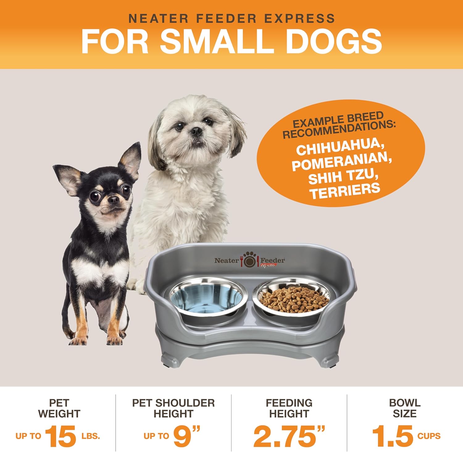 Neater Feeder Express Mess Proof Dog Bowls Elevated for Small Breeds under 18 Lb, Made in USA, No Spill Raised Dog Food Bowl Stand, Stainless Steel Food and Water Bowl Set, Feeding Station, Grey