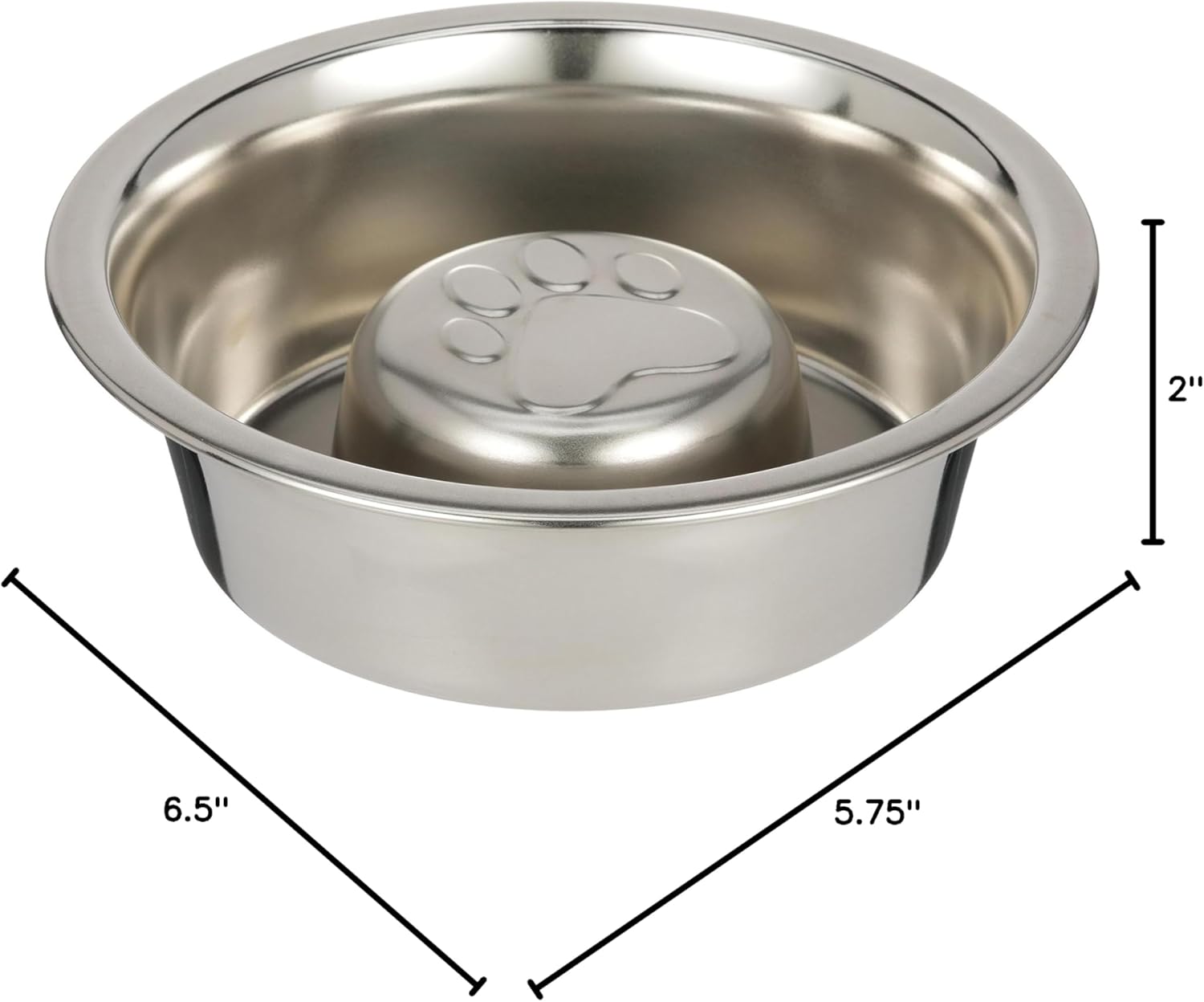 1 CUP CAPACITY: Slow-feed dog bowl holds up to 1 cup of wet or dry food—measures 6.5” in Diameter and 2″ High. We recommend this size for small to medium dog breeds.