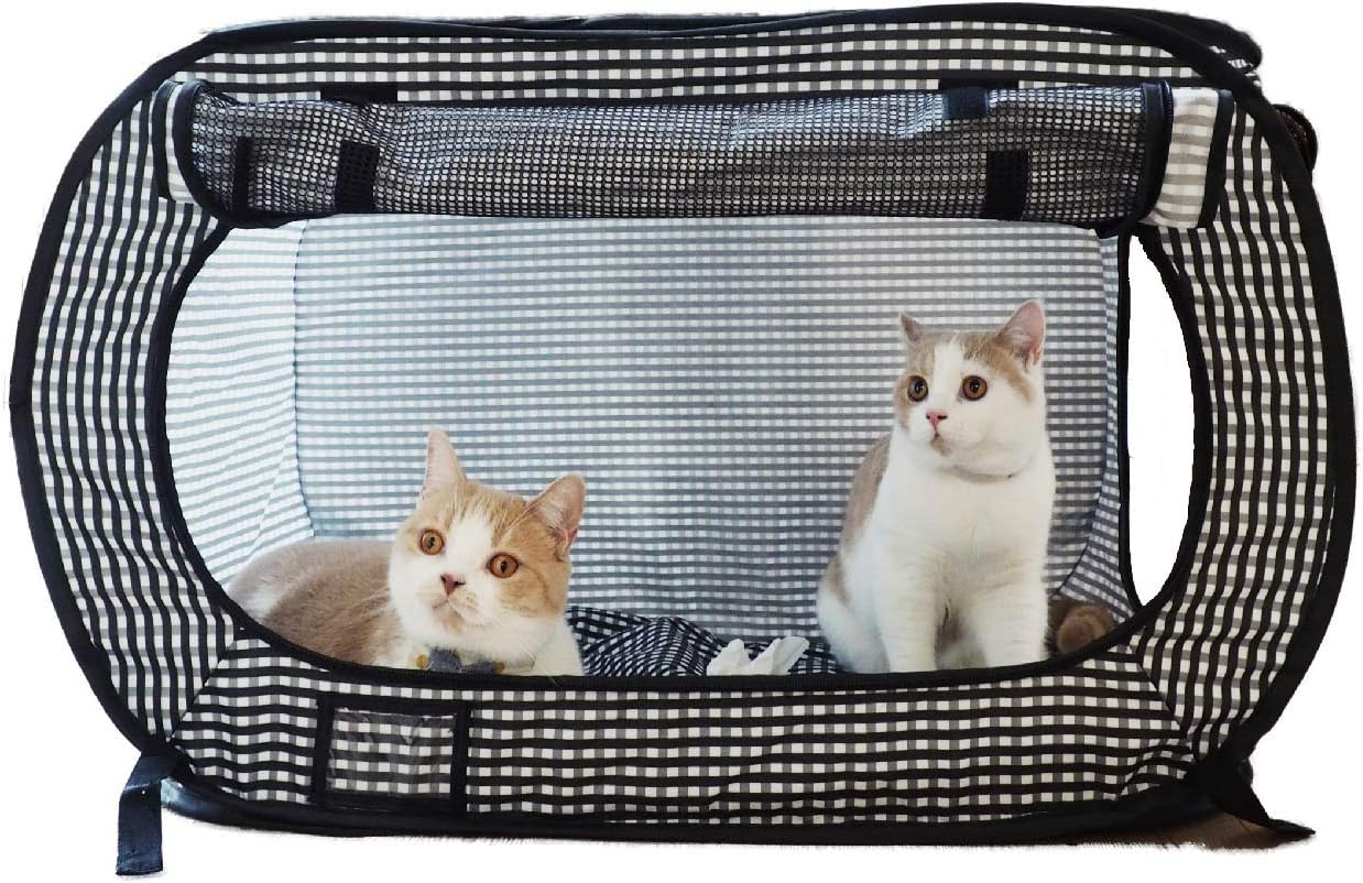 Pop-open, fully collapsible, portable cat cage is convenient and comfortable for both you and your cat