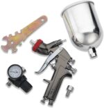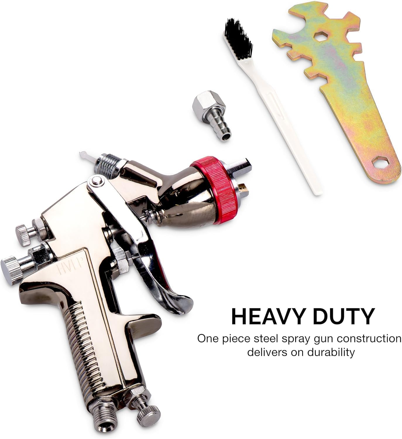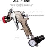 HIGH VOLUME LOW PRESSURE HVLP: The gravity-feed fluid delivery design smoothly feeds your paint sprayer and works together with three adjustable valve knobs for precise paint application.