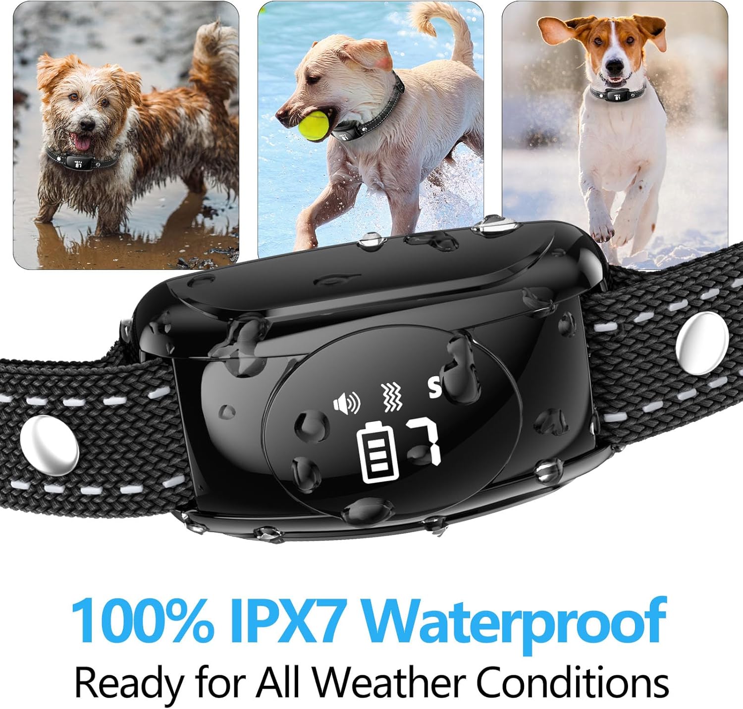100% IPX7 Waterproof & Rechargeable: Anti bark collars for dogs is IPX7 waterproof rating designed for indoor and outdoor training in any weather conditions; It can withstand submersion in water up to 1 meter deep for up to 30 minutes, which meaning your dog with remote dog training collar can enjoy taking a bath, swimming or walking in the rain; No bark collar only takes about 2 hours to fully charge and can work for about 3-5 days