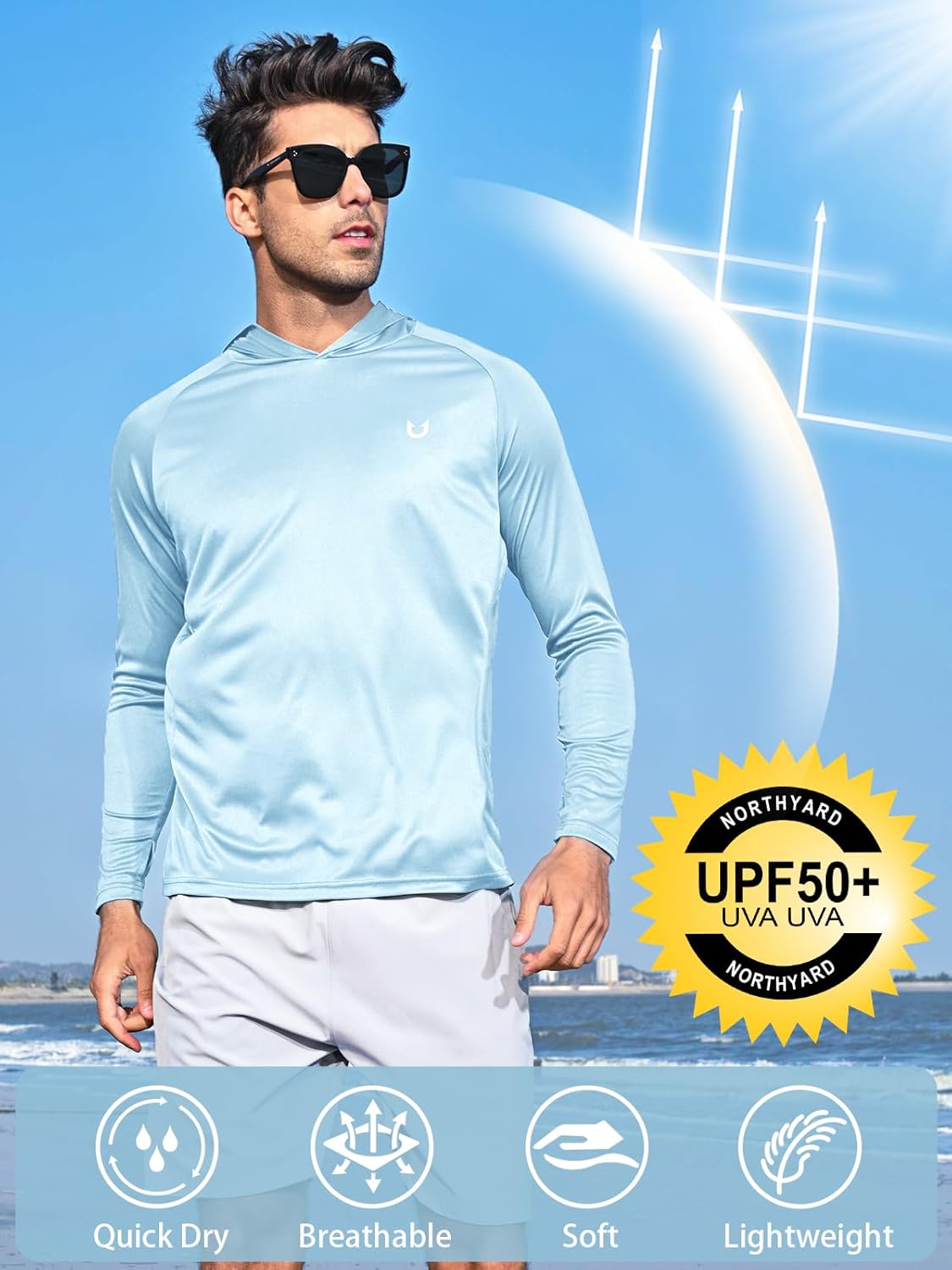 NORTHYARD Men’s UPF 50+ Hoodie Shirts Long Sleeve Sun Protection Fishing Swim Lightweight UV SPF Running Rash Guard Quick Dry