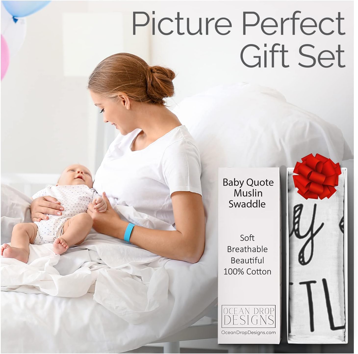 Swaddles for Newborns: Elevate your gift with our muslin swaddle blanket featuring inspirational quotes beautifully boxed. Ideal for newborns, baby showers, baptisms, and gender reveals – perfect for baby boys and girls.