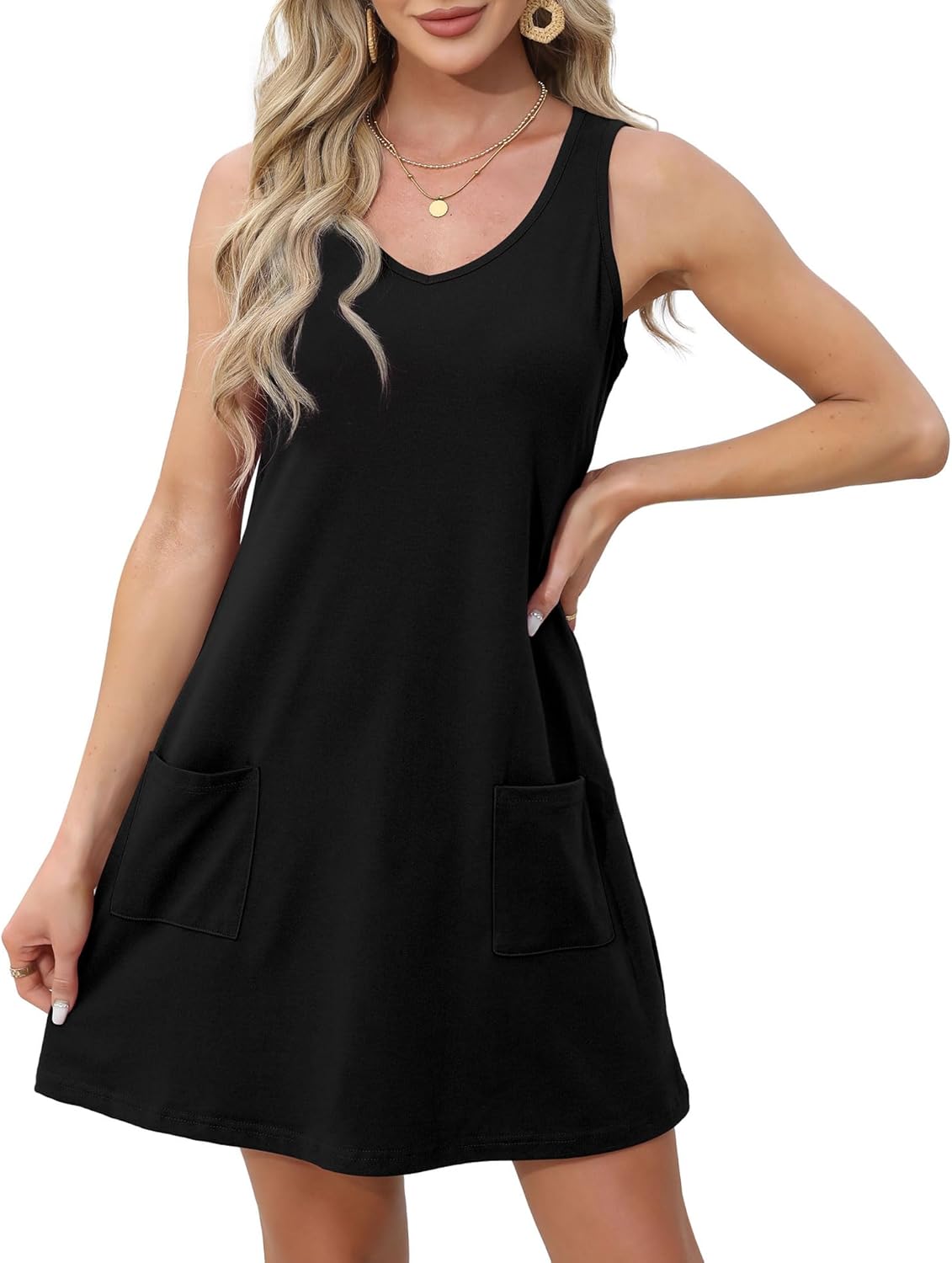 OFEEFAN Tank Dress with Pockets T Shirt Casual Dress