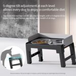 TILTABLE DESIGN PROTECTS NECK AND JOINTS: The feeder is height adjustable through the front and back legs, each gear gap 5 degrees tilt, easy for dogs to eat, protecting their necks and spines while relieving pressure on their joints, promote healthier digestion. Recommendation: The best tilt angle is 10 degrees, and the hindlegs are 2 grids higher than the front legs.